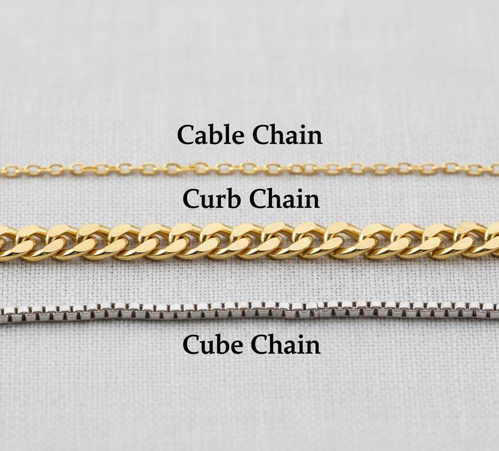 1️⃣ Select your finish & chain type (Silver / Gold / Rose Gold + Cable / Cube / Curb).