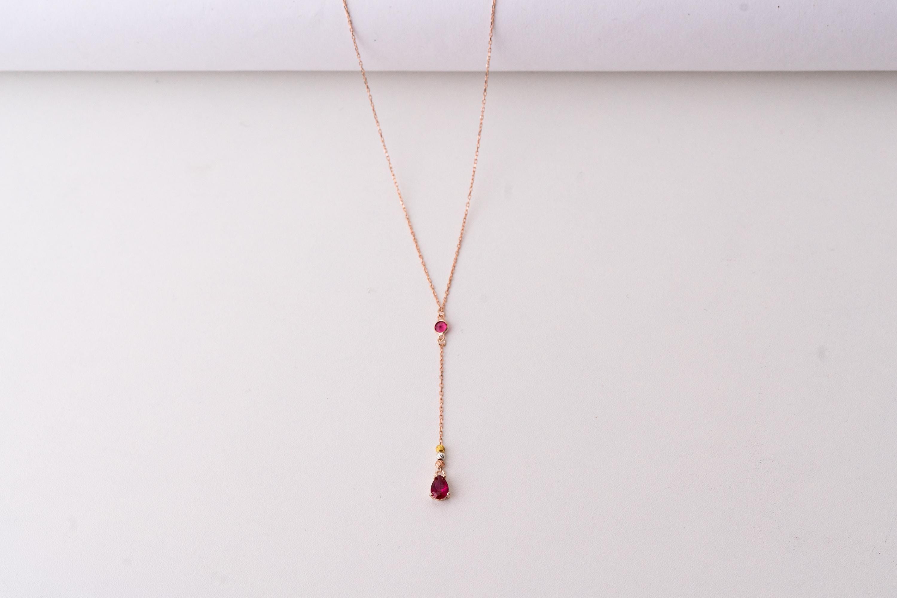 This elegant Y-shaped lariat necklace features two teardrop pendants and can be customized with your choice of birthstones. A meaningful keepsake, perfect for everyday wear or as a timeless Christmas jewelry gift for her.