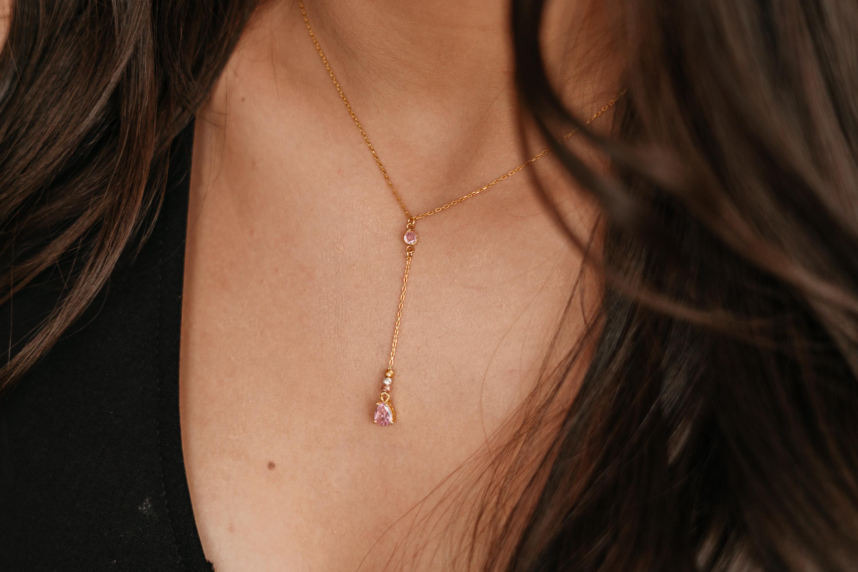 ✨ Double Teardrop Lariat Y Necklace – Personalized Birthstone Jewelry