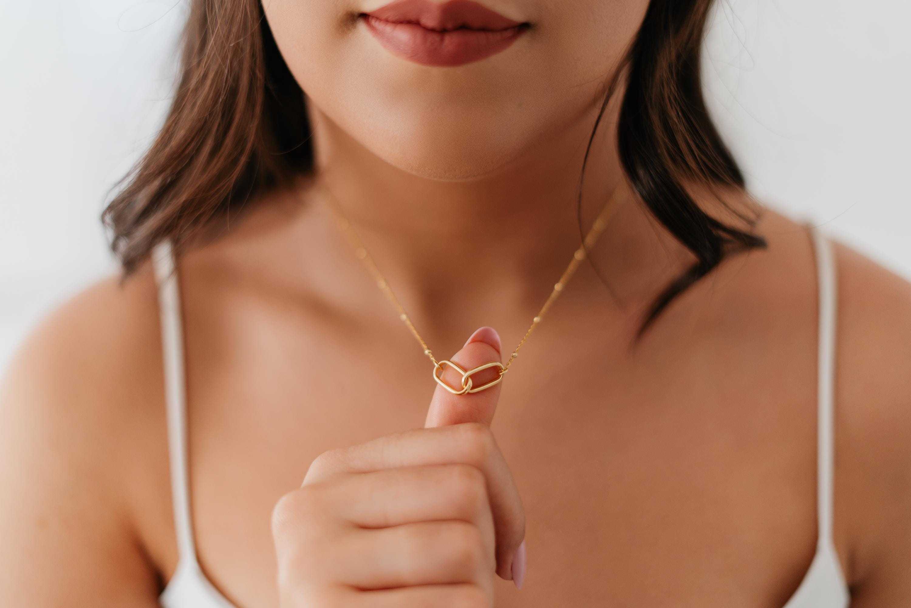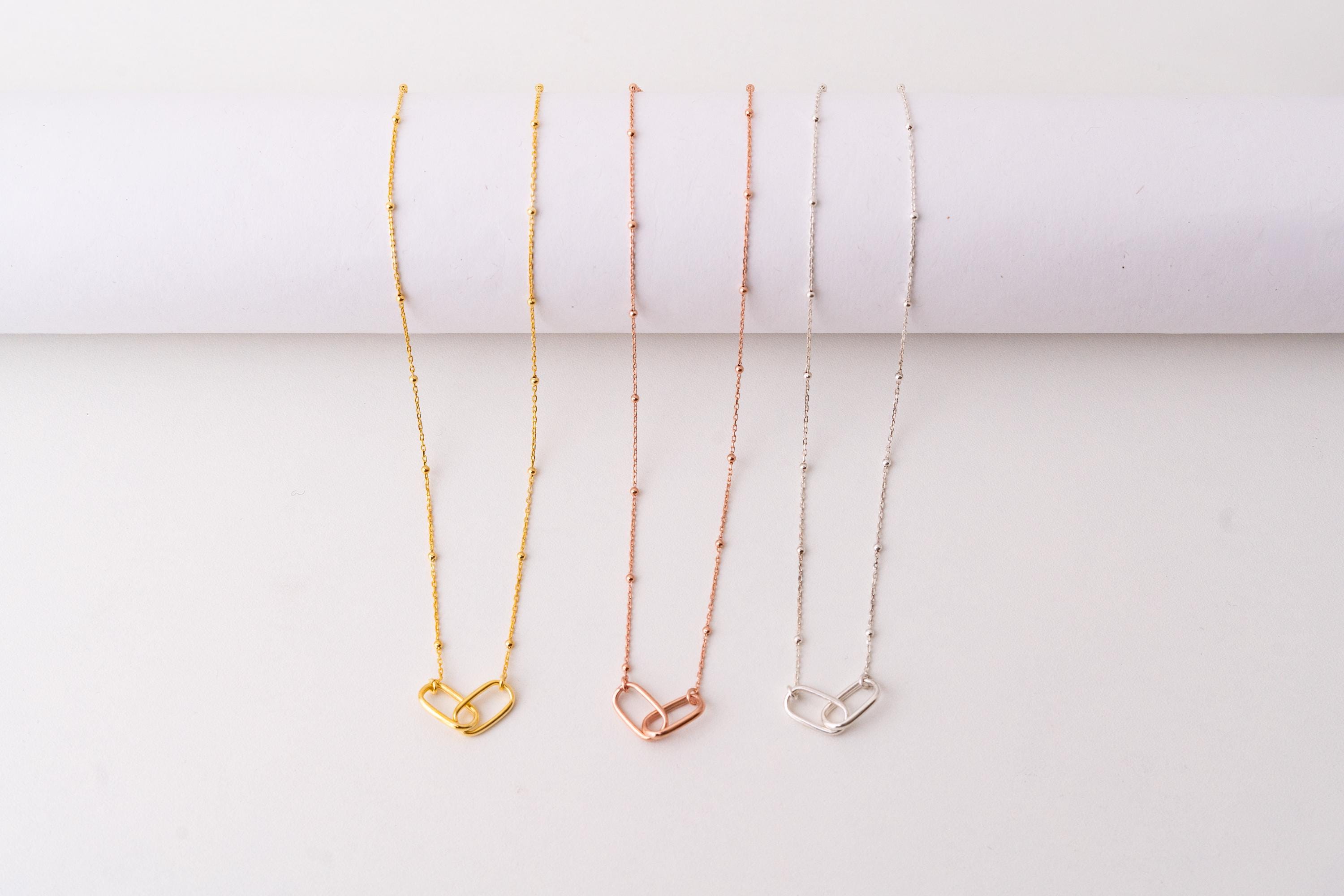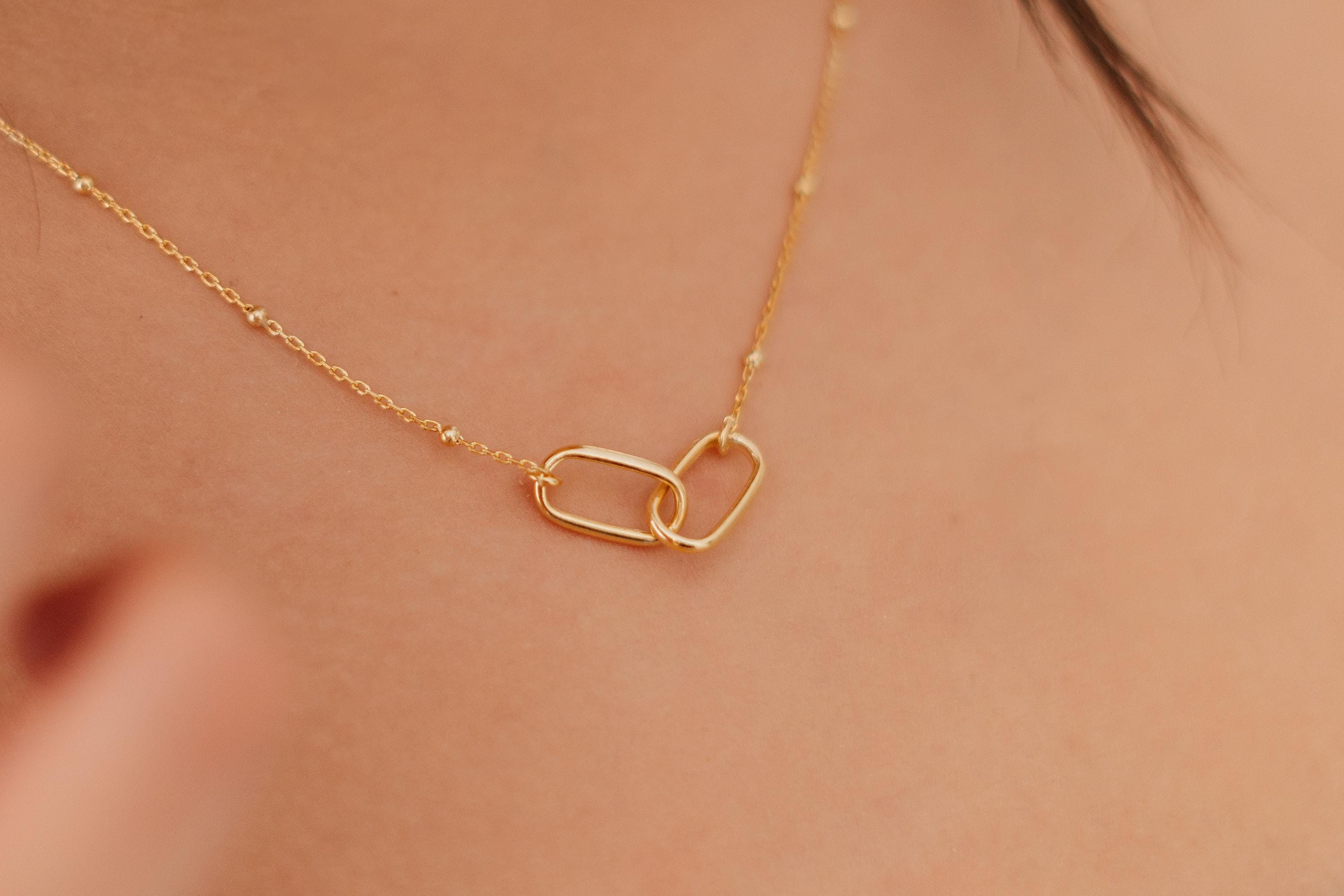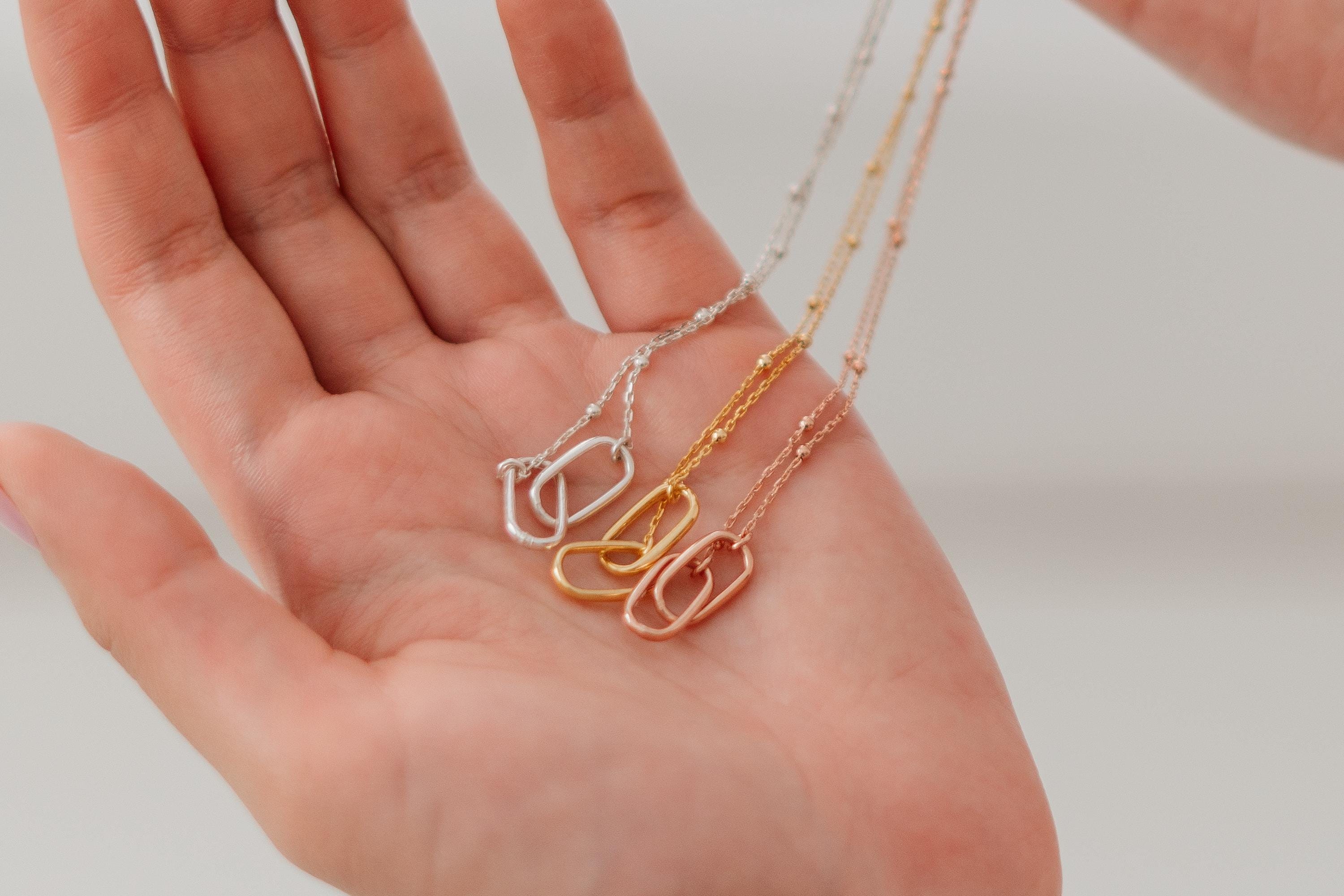 Handcrafted in sterling silver, 14k gold plated, or rose gold plated finishes, this linked circle necklace blends modern chain design with meaningful symbolism. Whether chosen as a best friend gift, sister gift, or Christmas gift, this ball chain necklace with paperclip accents is a versatile keepsake for everyday wear.