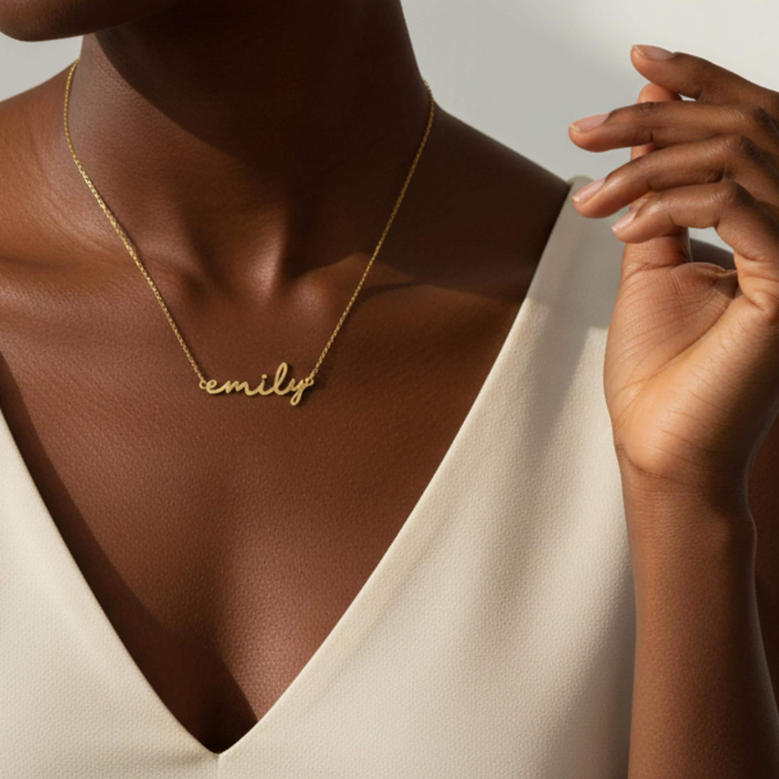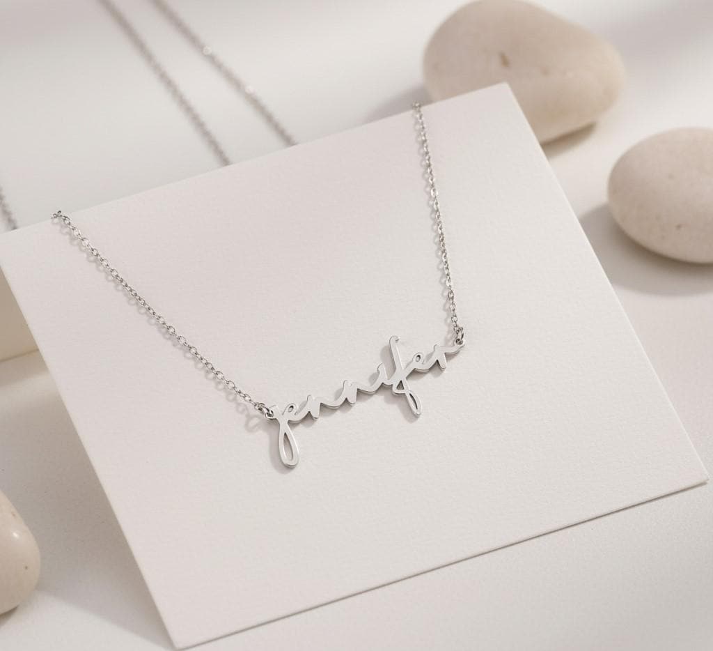 Turn words into memories with our custom handwriting name necklace, a unique piece of personalized jewelry crafted to feature your chosen name or word in elegant script. Available in 14k gold plated, sterling silver, or rose gold finishes, this necklace is custom-made to carry meaning close to your heart.