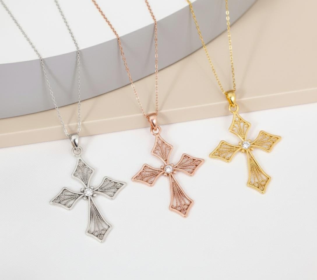 Each pendant is made with high-quality materials and fine detailing, offering a beautiful mix of vintage charm and modern minimalism. The intricate design of this gold filigree cross and silver filigree cross makes it a meaningful Christian necklace that complements every outfit.