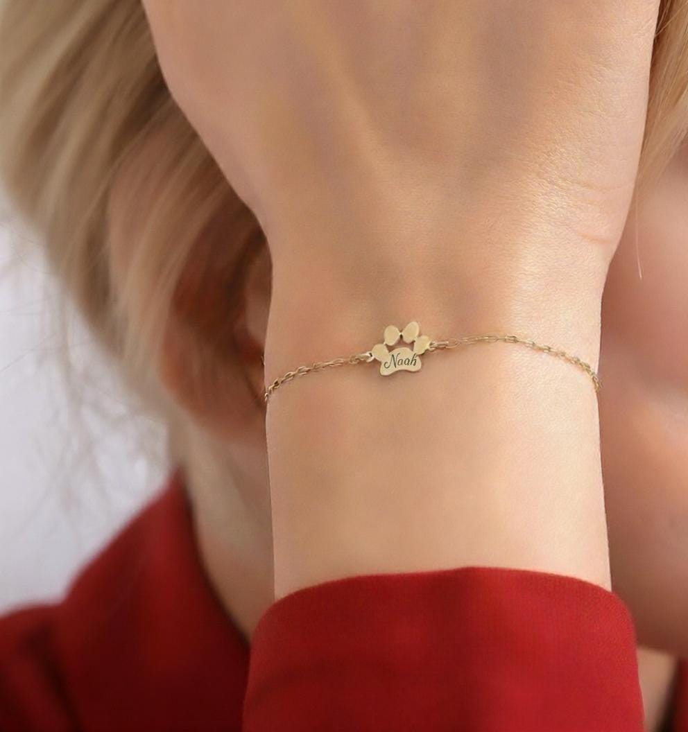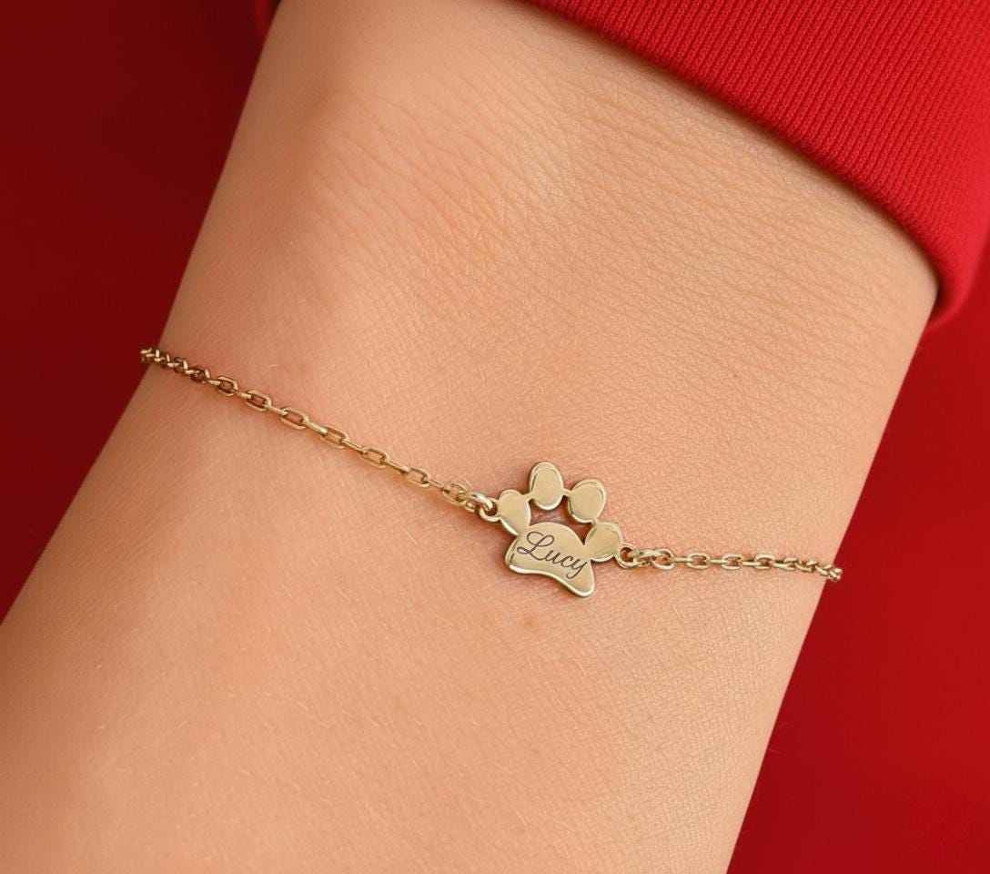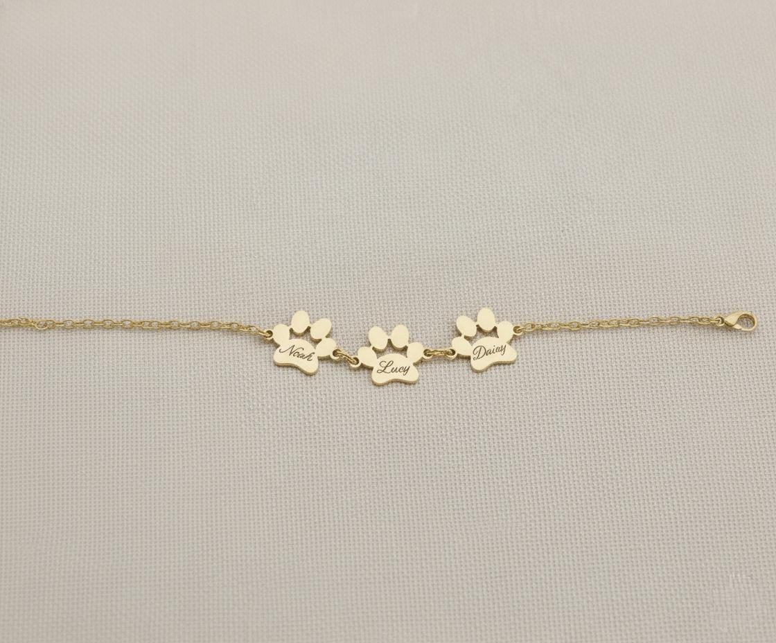 Celebrate the unconditional love of your furry friends with our high-quality sterling silver paw print bracelet, handcrafted to keep your pet’s name close to your heart. Each custom pet bracelet features up to five engraved paw charms, allowing you to personalize it with your pet’s name — a meaningful reminder of your loyal companion.