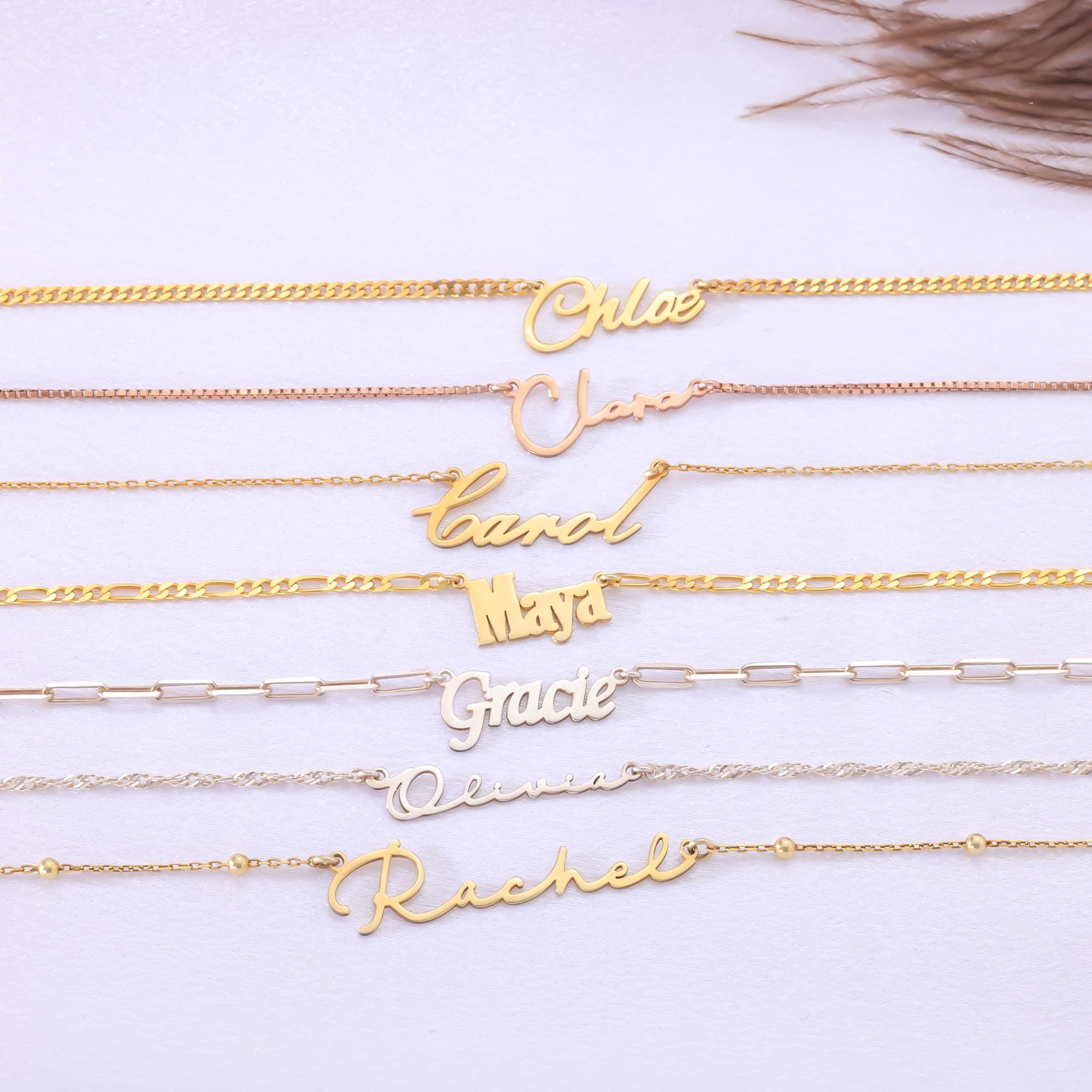 This personalized name necklace allows you to choose your favorite chain style, offering a perfect balance of elegance and individuality.