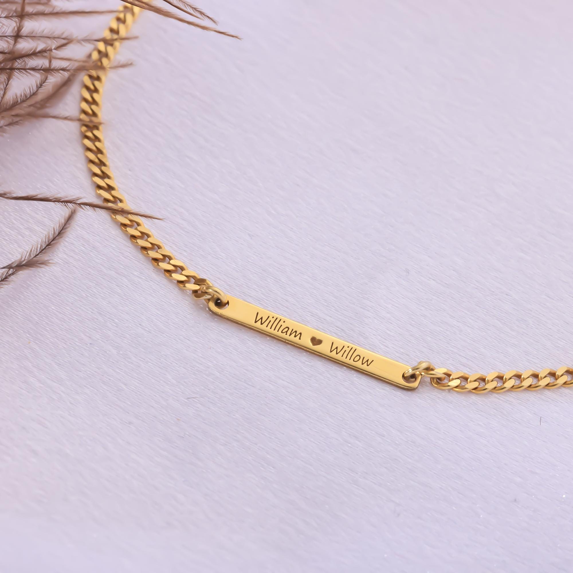 The curb chain bar style offers a modern, unisex look — perfect for everyday wear or as a thoughtful gift that symbolises unity and love.