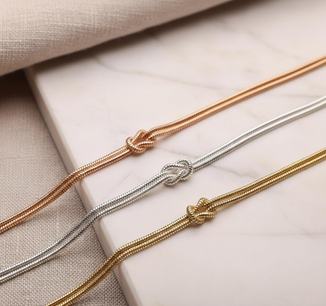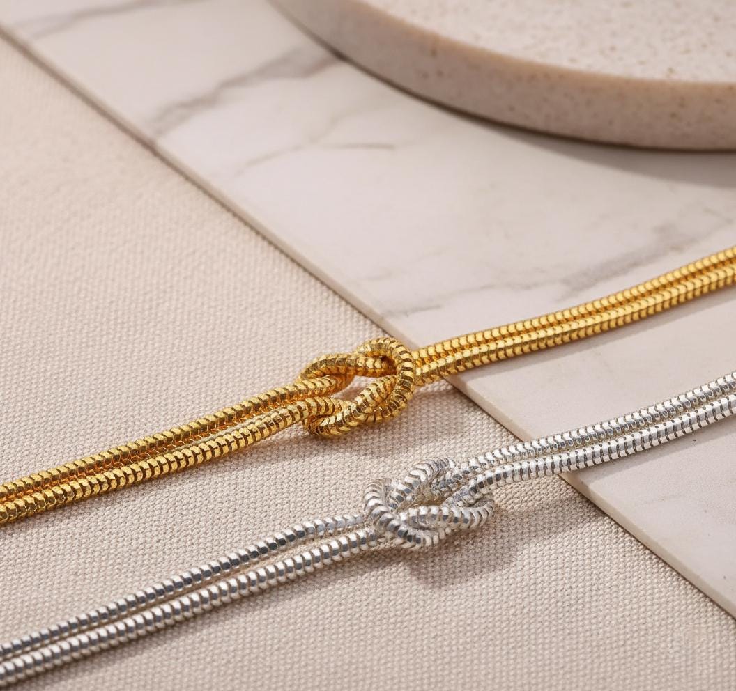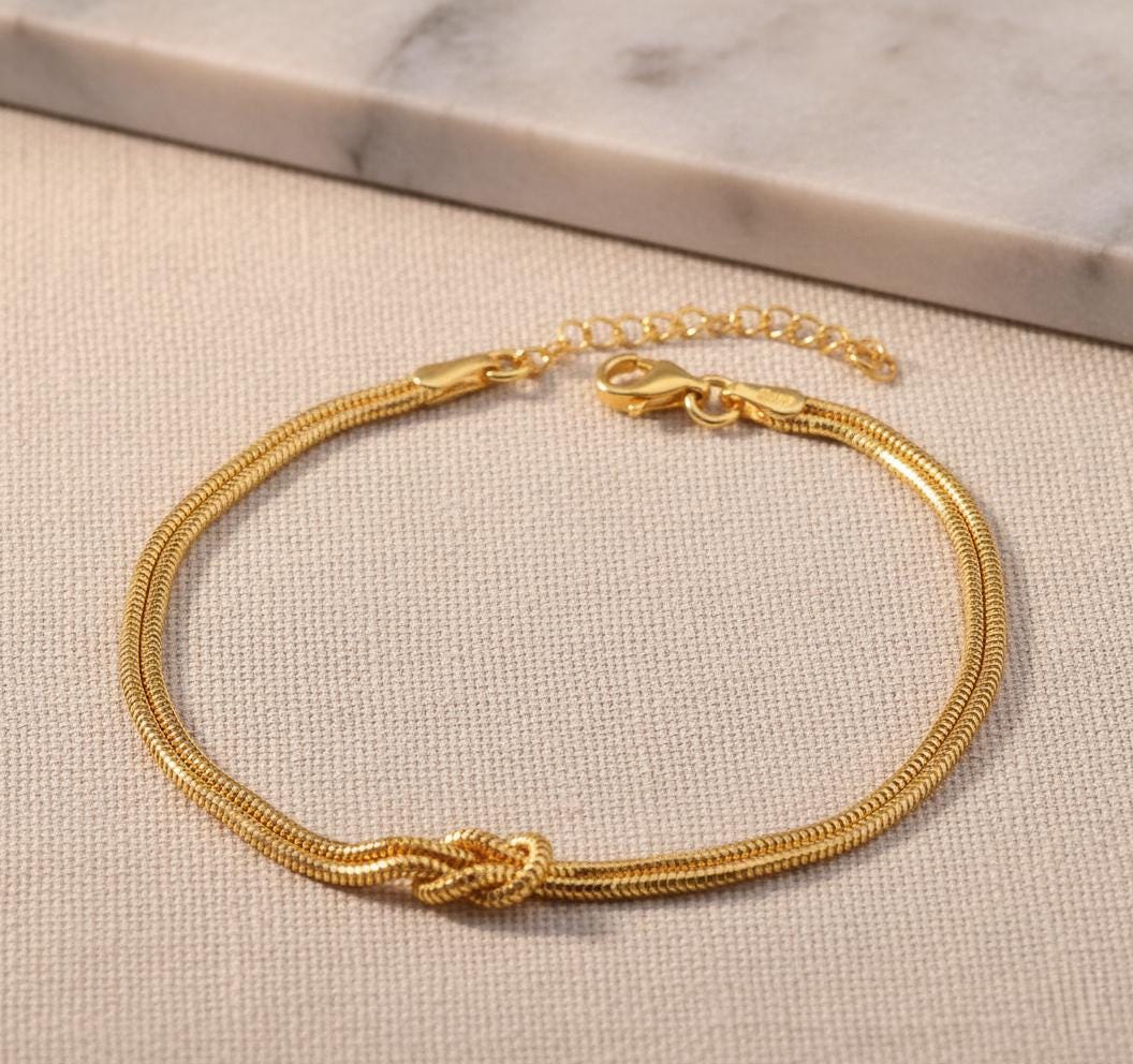 Celebrate your unbreakable bond with our Love Knot Bracelet, handcrafted from 100% genuine 925 Sterling Silver and plated in your choice of 14K Gold or 14K Rose Gold.