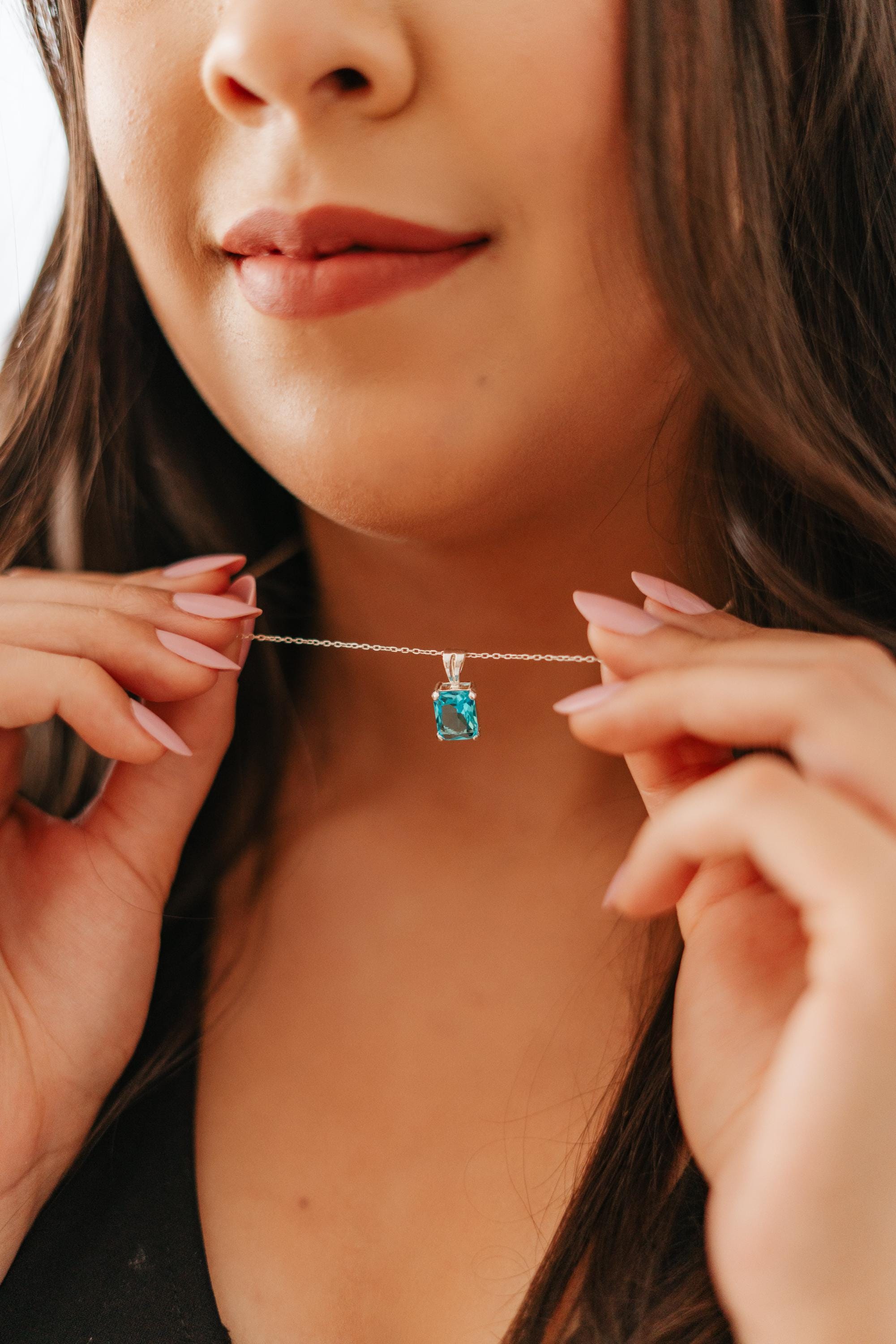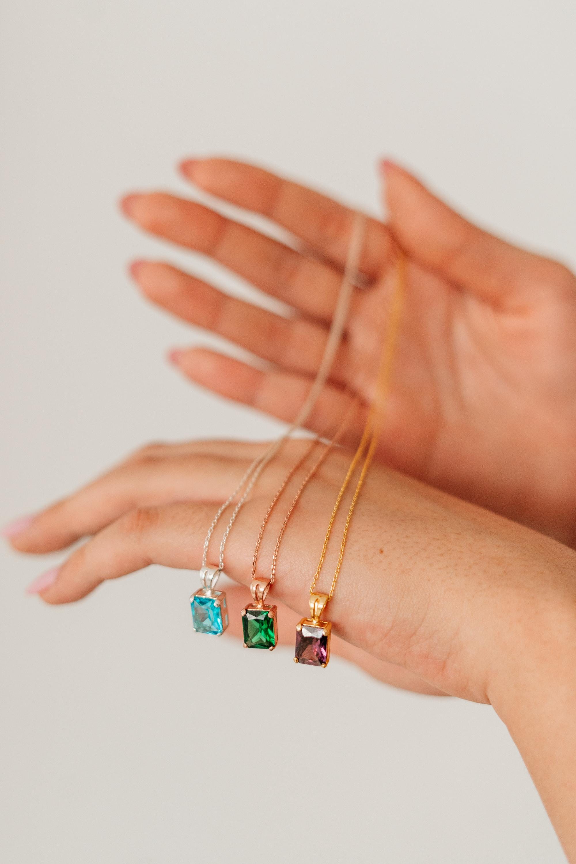 This Emerald Cut Birthstone Necklace is the perfect keepsake for birthdays or meaningful occasions, featuring a radiant rectangular crystal that represents your birth month.