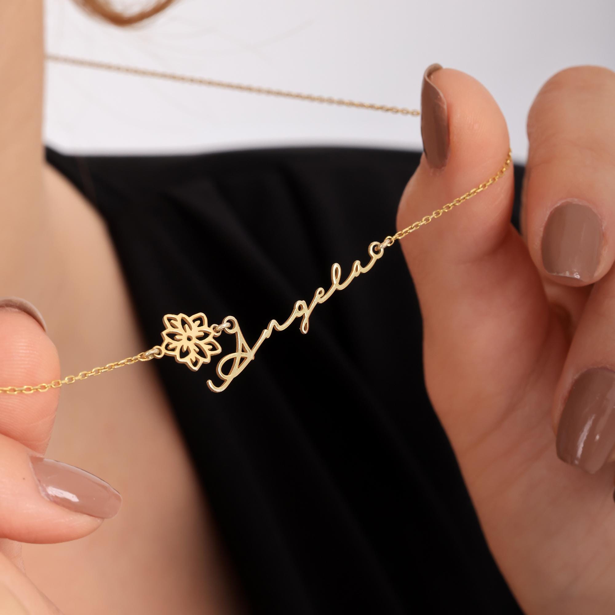 ✨ Celebrate the bond between name and nature with our Custom Name Necklace with Birth Flower — a beautifully handcrafted piece that captures your unique story.