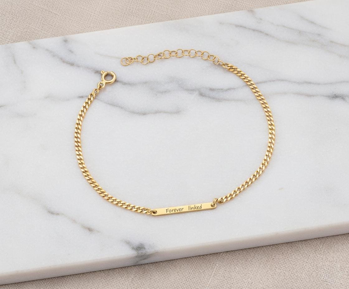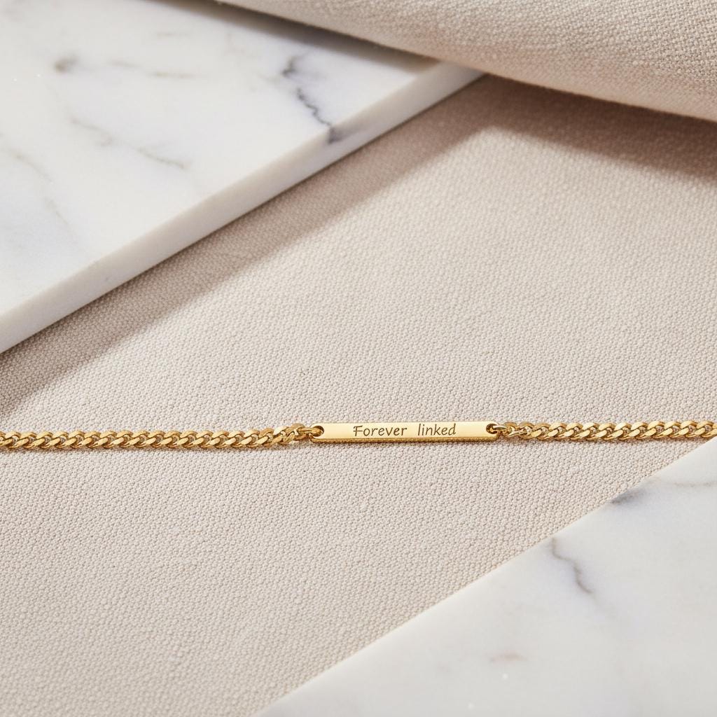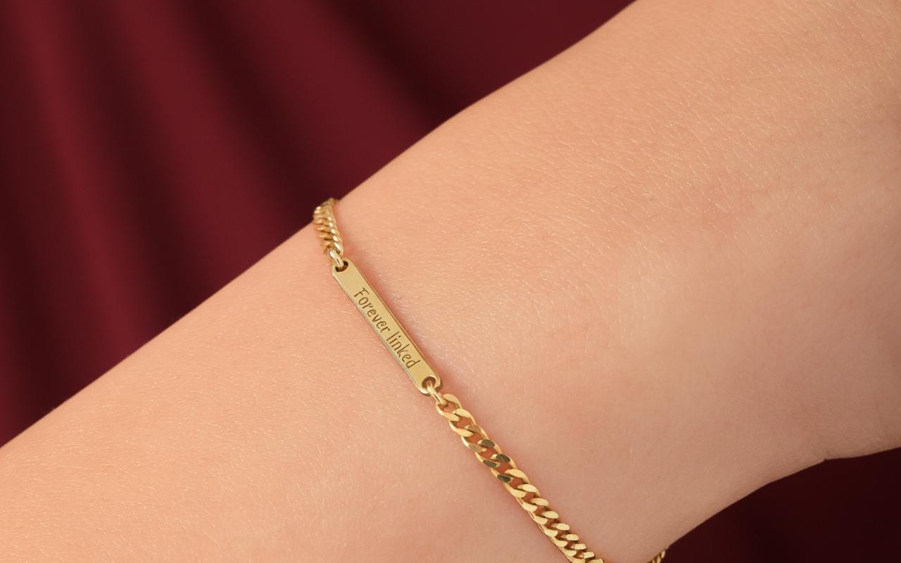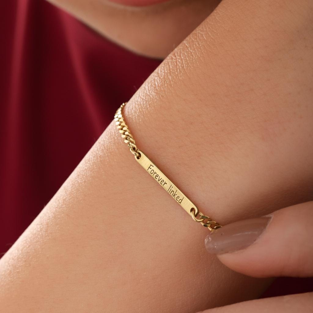 The front is engraved with the fixed message “Forever Linked”, while the back can be personalised with your own engraving — a name, date, or hidden message (up to 16 characters).