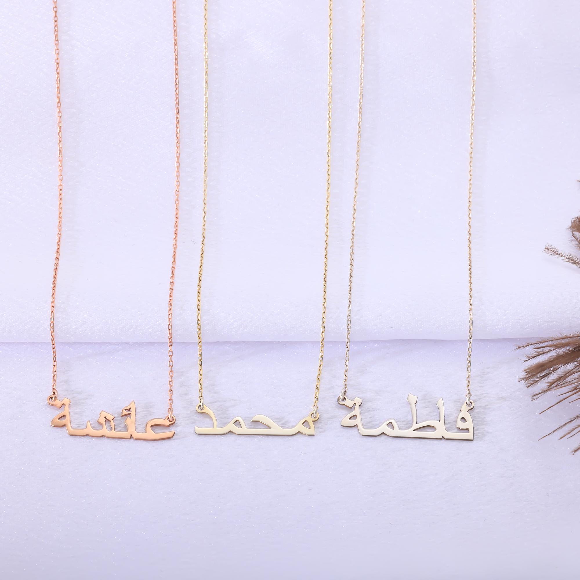 Celebrate your story with our elegant Arabic Name Necklace, beautifully handcrafted from 100% genuine 925 Sterling Silver and finished in your choice of 14K Gold or 14K Rose Gold plating.