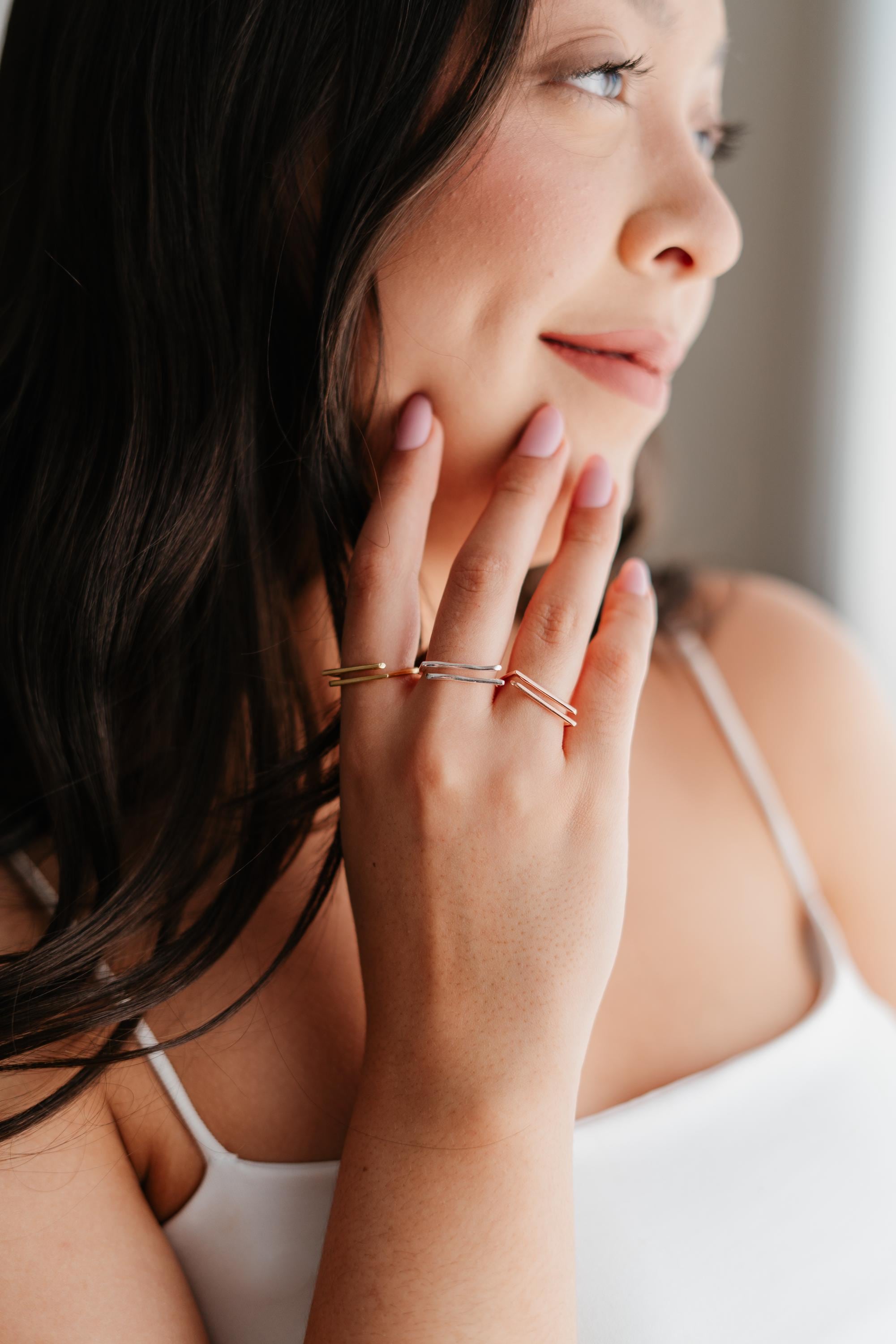 ✨ Embrace minimalist elegance with our Modern Double Bar Ring, a sleek open band designed to add a touch of sophistication to any outfit.