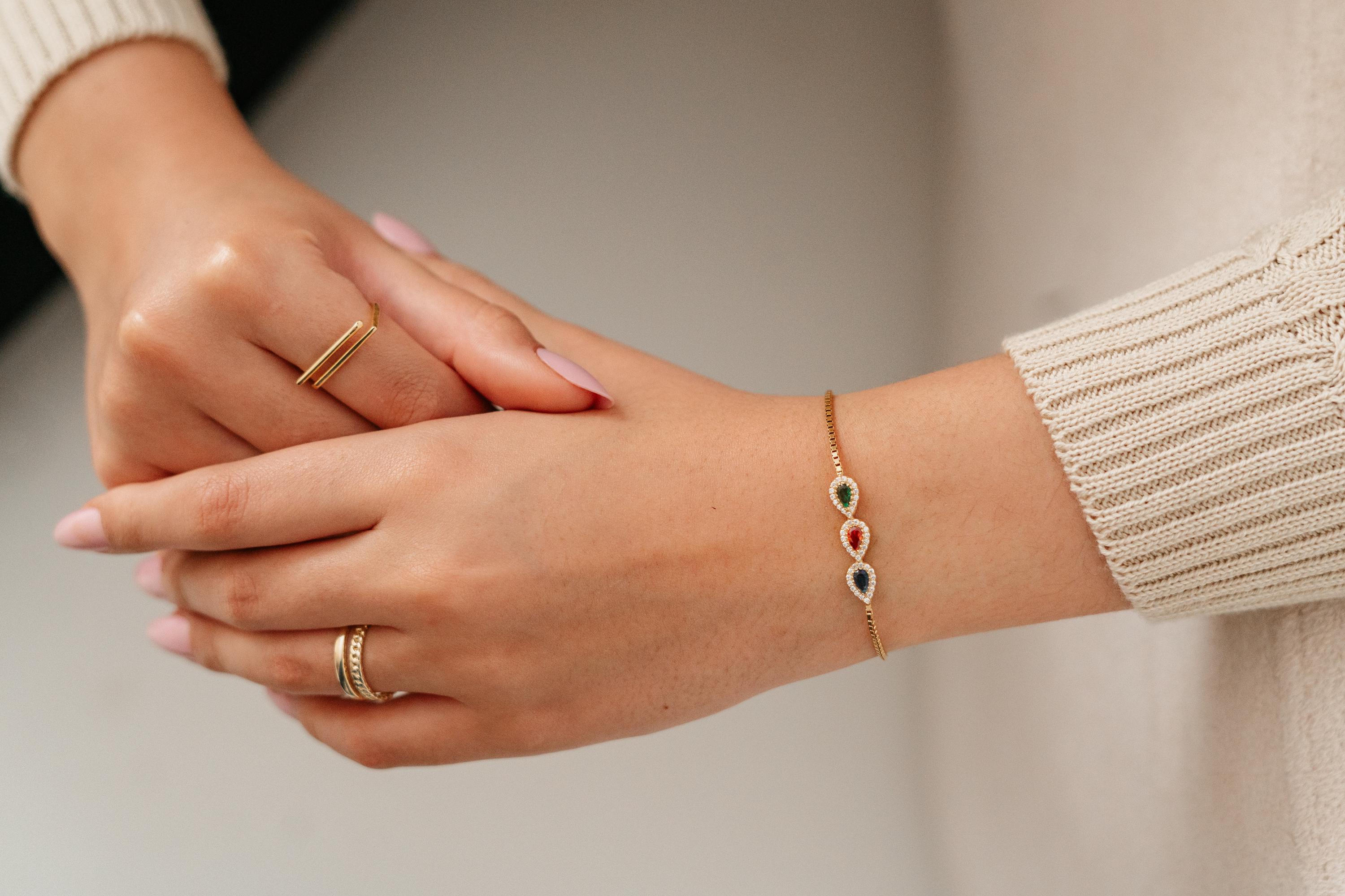 Our Family Birthstone Bracelet features up to five teardrop birthstones, each symbolising a special person in your life.
