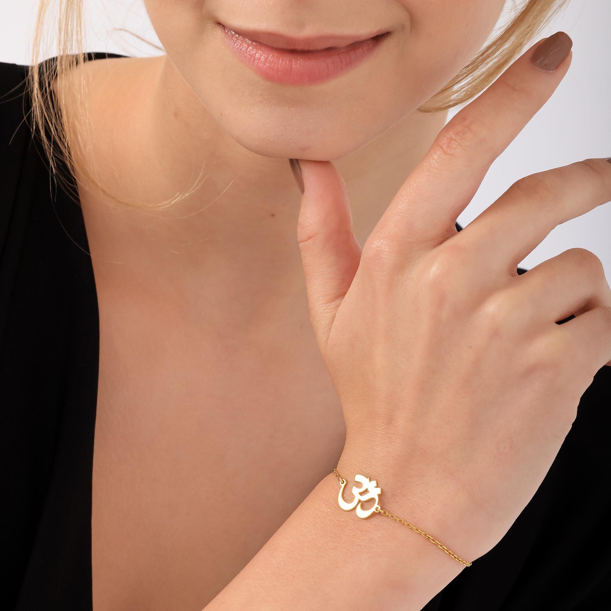This Om Symbol Bracelet is carefully handcrafted from 100% genuine 925 Sterling Silver, with optional 14K Gold or 14K Rose Gold plating.