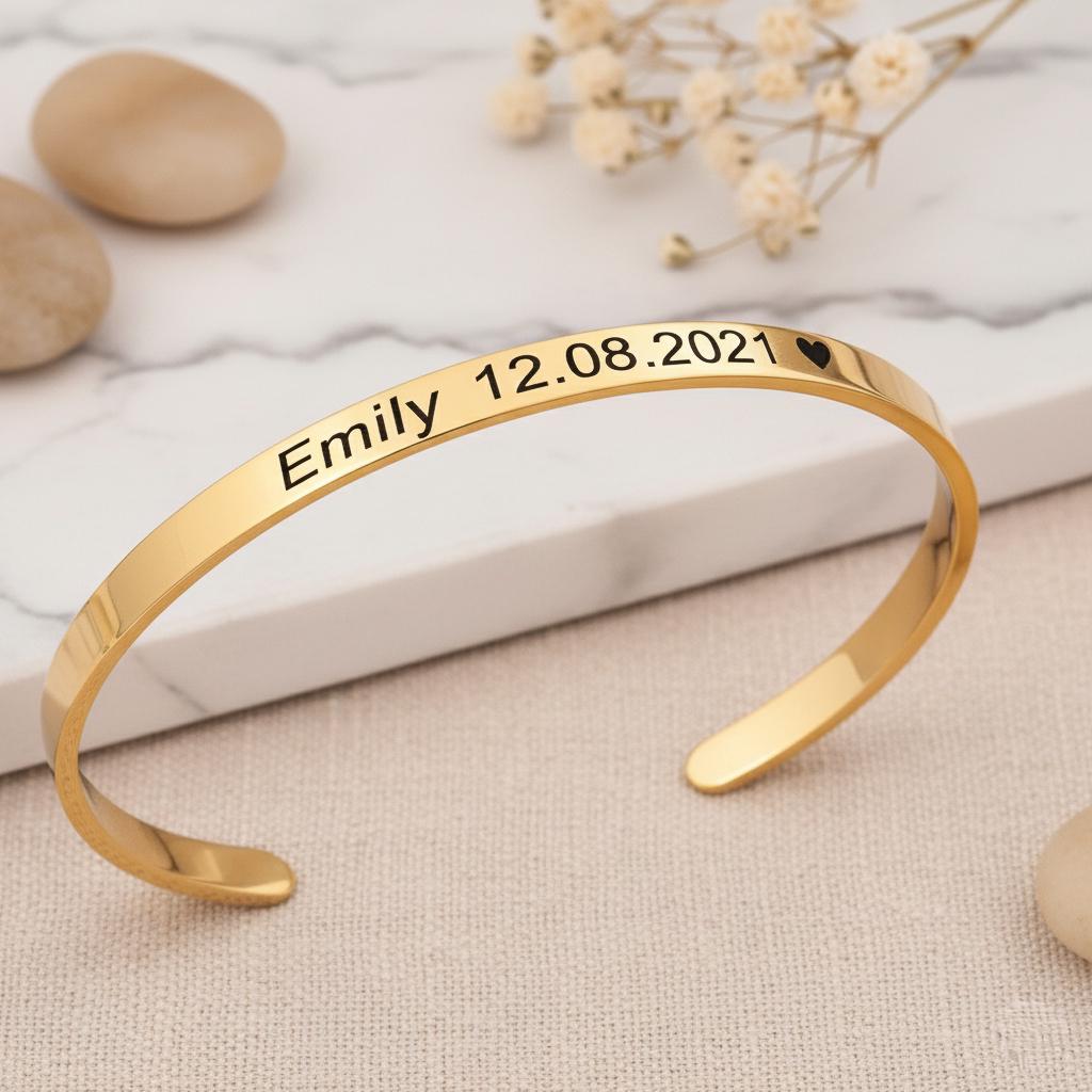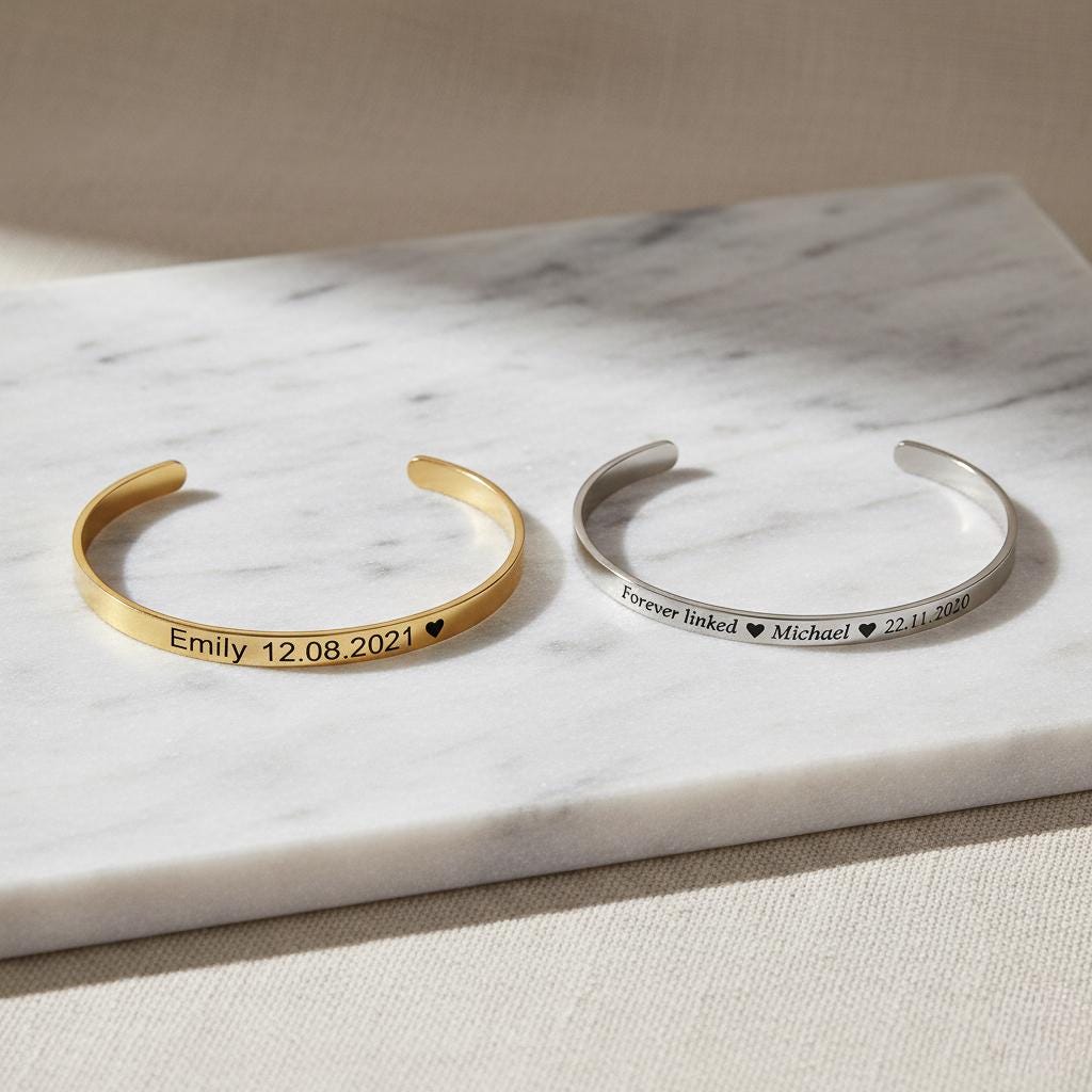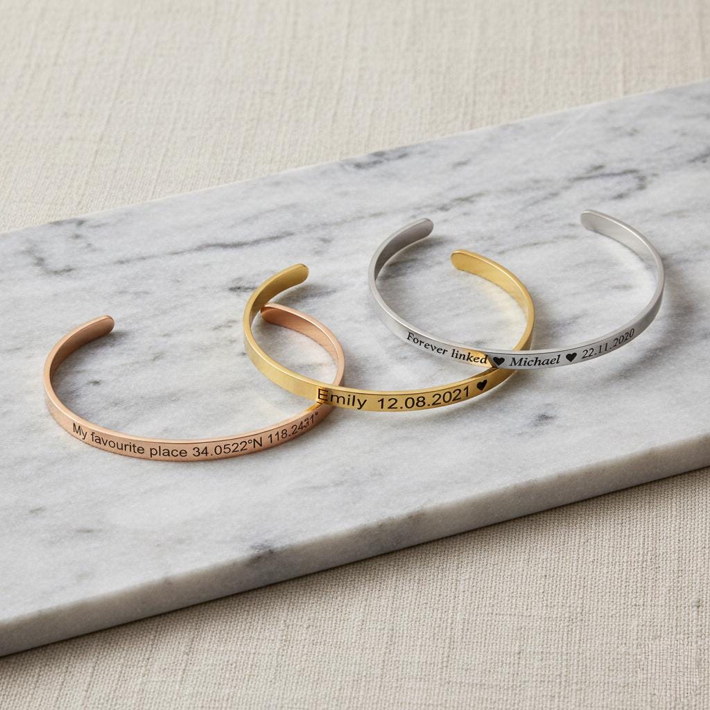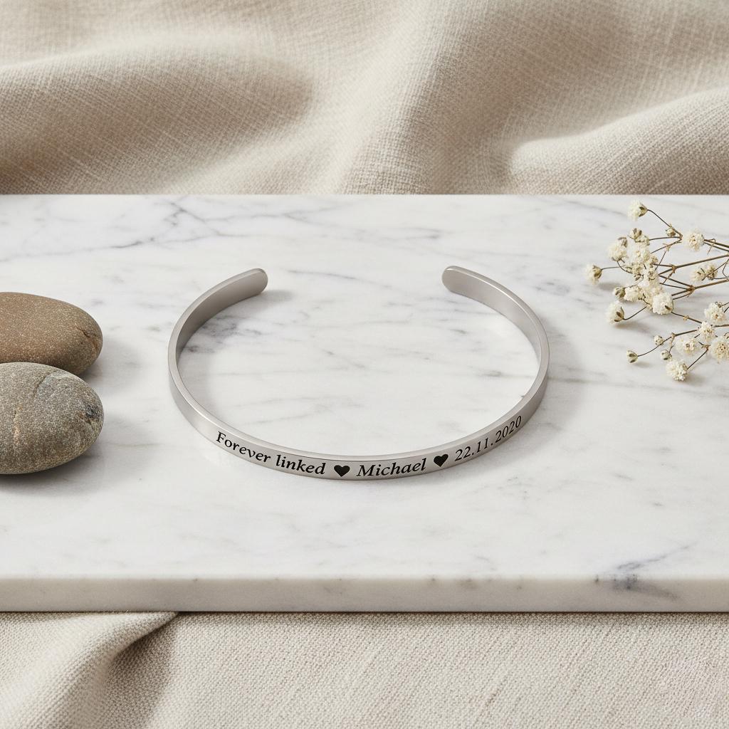 💡 The cuff has a long engraving surface — long messages fit easily, no strict character limit required.