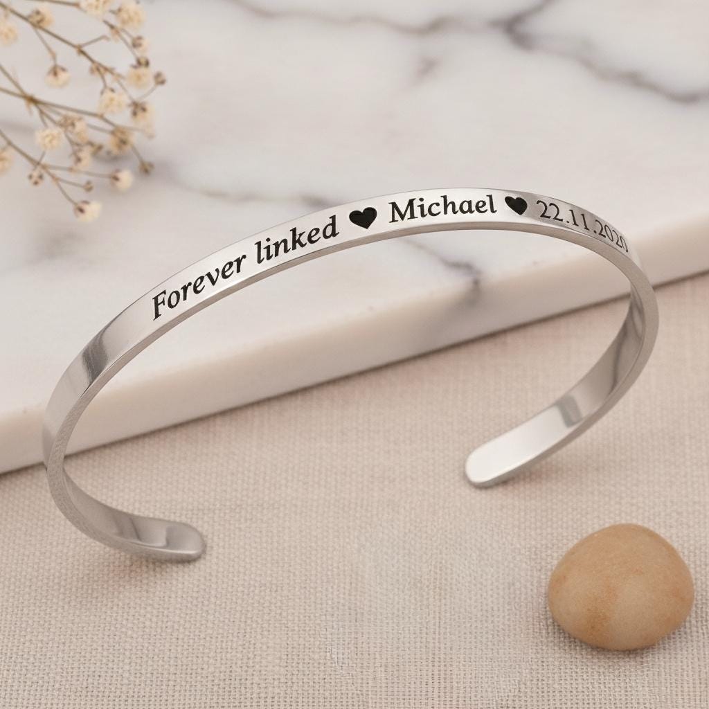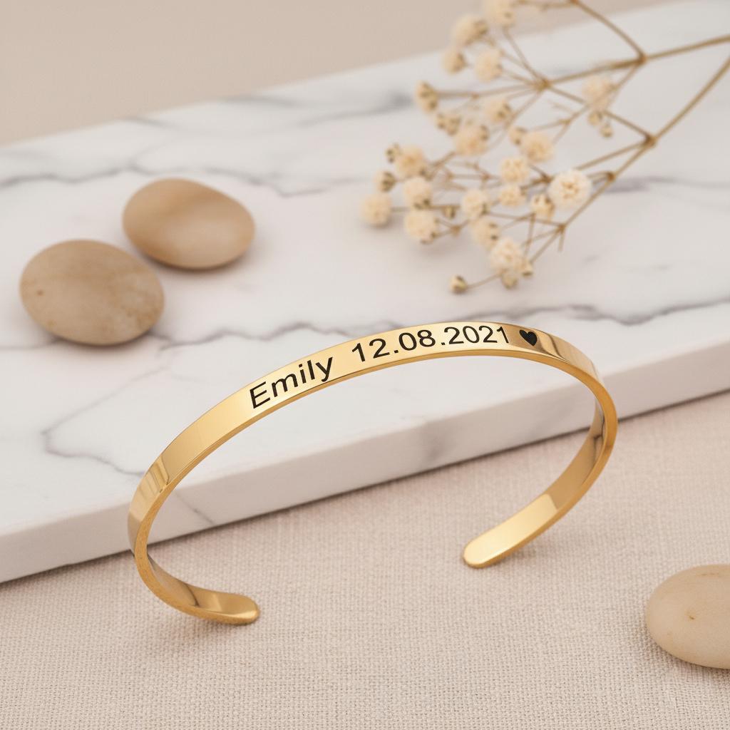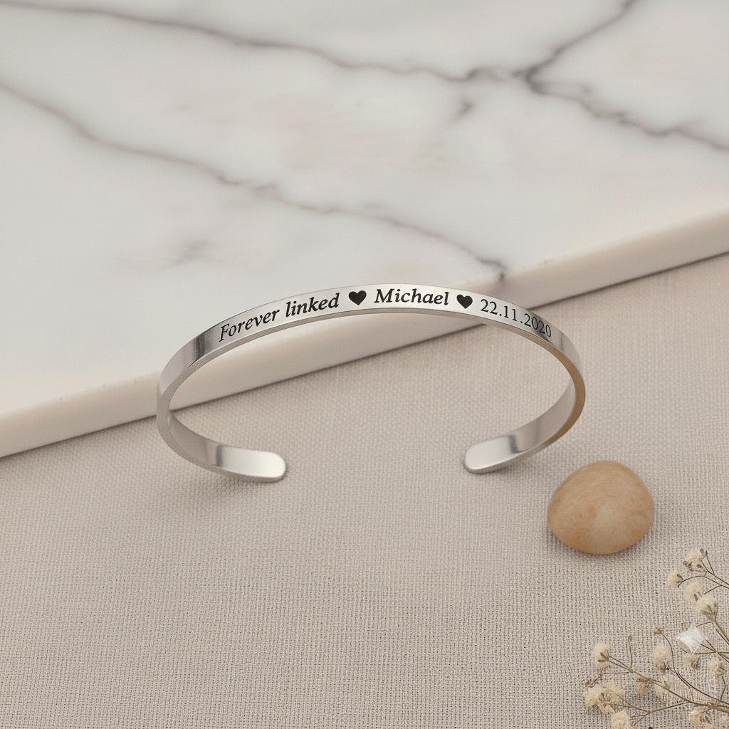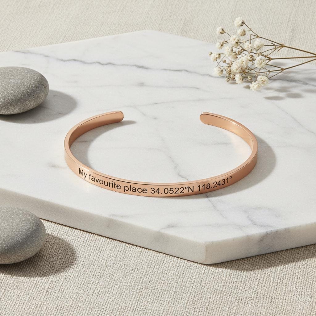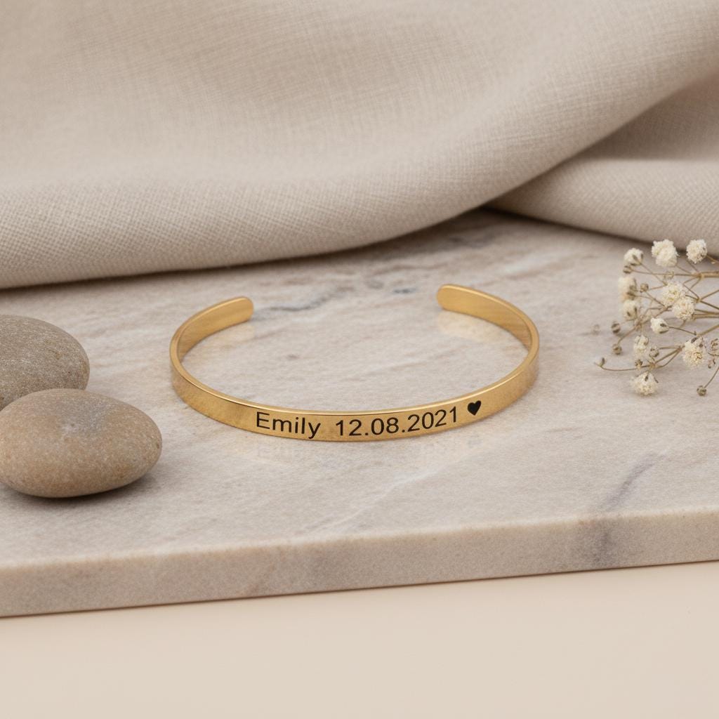 💡 The cuff has a long engraving surface — long messages fit easily, no strict character limit required.